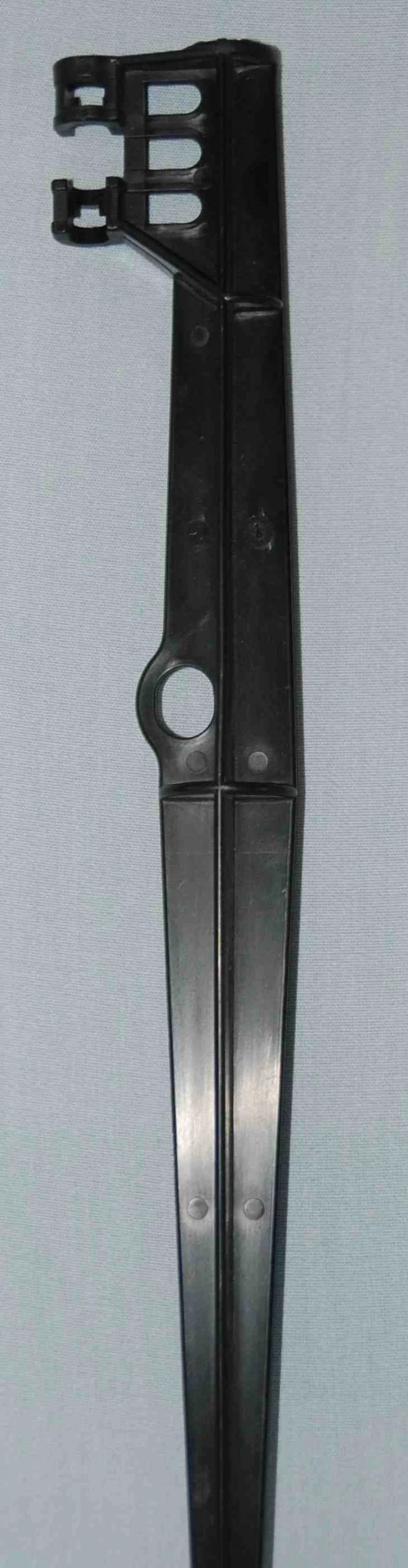 A plastic stake that will accept rigid and flexible riser tube.