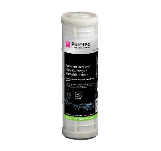 The Puretec washable screen cartridge, is ideal for the removal of high sediment and dirt, at a high flow rate. With a coarse filtration rating they are typically used for pump protection, aquaculture, etc. This cartridge is not recommended as a final filter for drinking water.