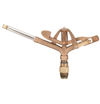 - Double jet high performance impact sprinkler, solid brass construction with stainless steel drive spring